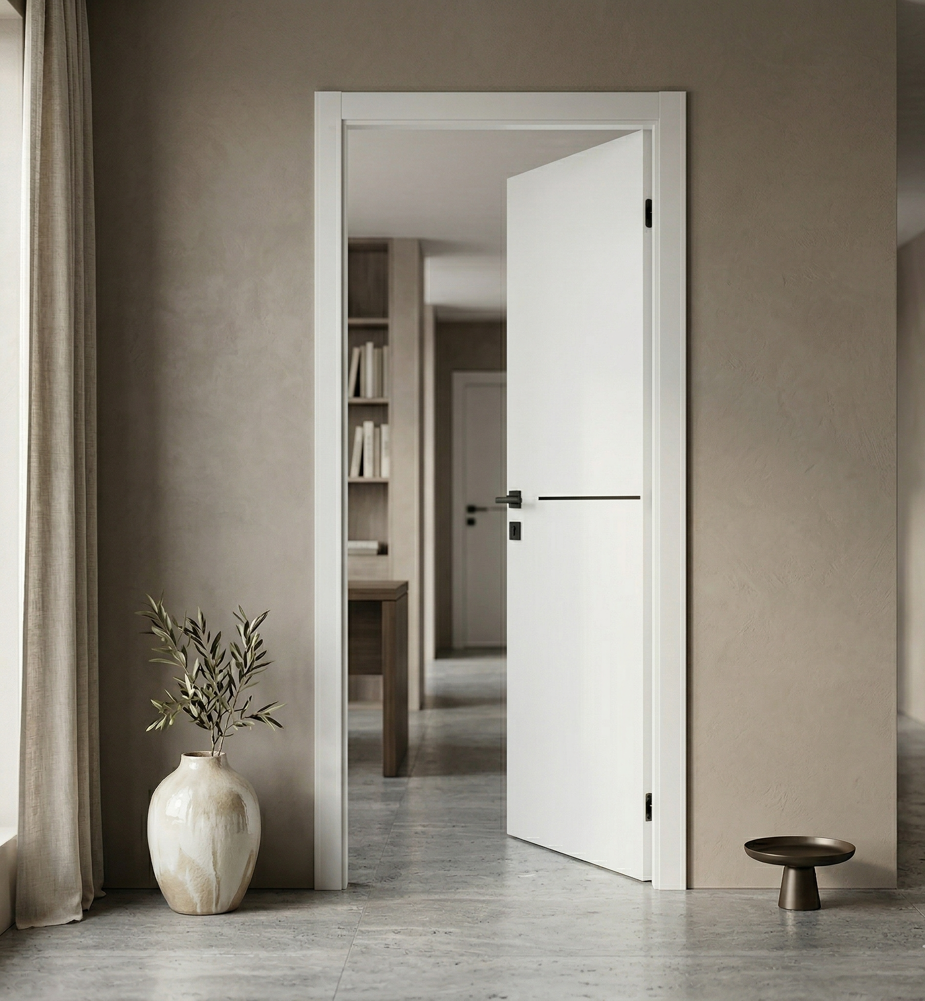 Ușă de interior JY-006 alb mat cu inserție neagră