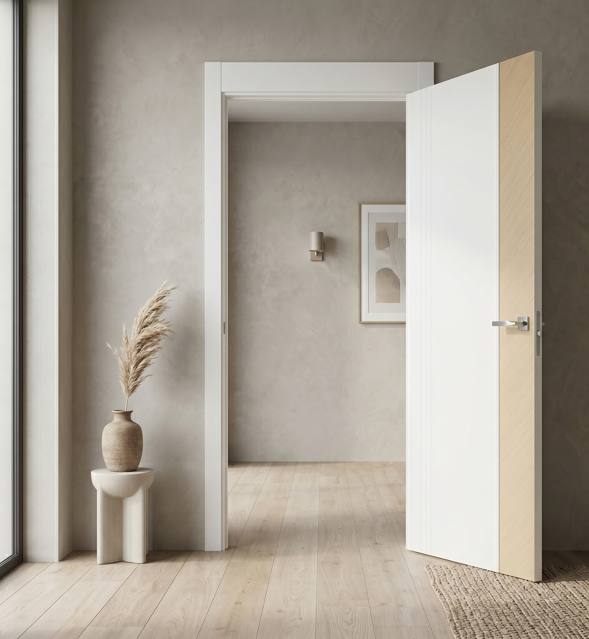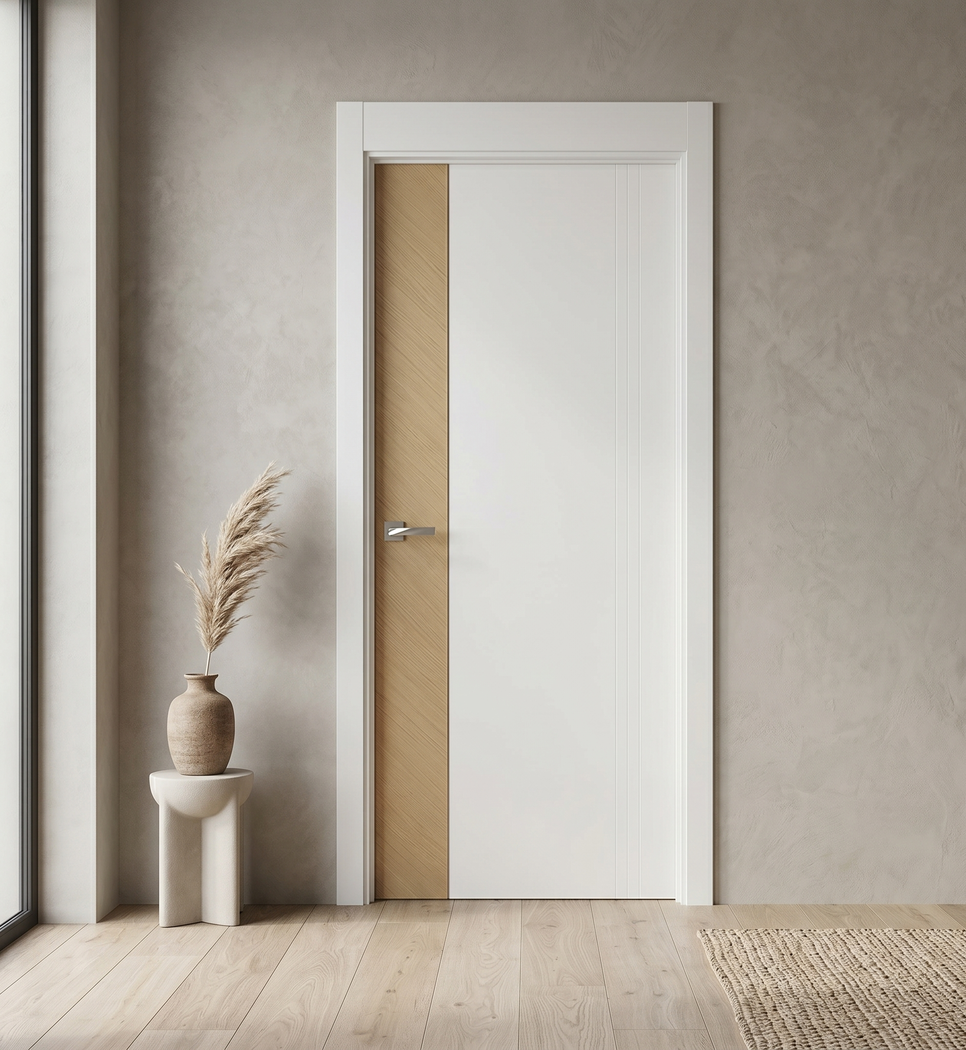 Ușă vopsită JYP-104 Alb cu inserție furnir și riflaj