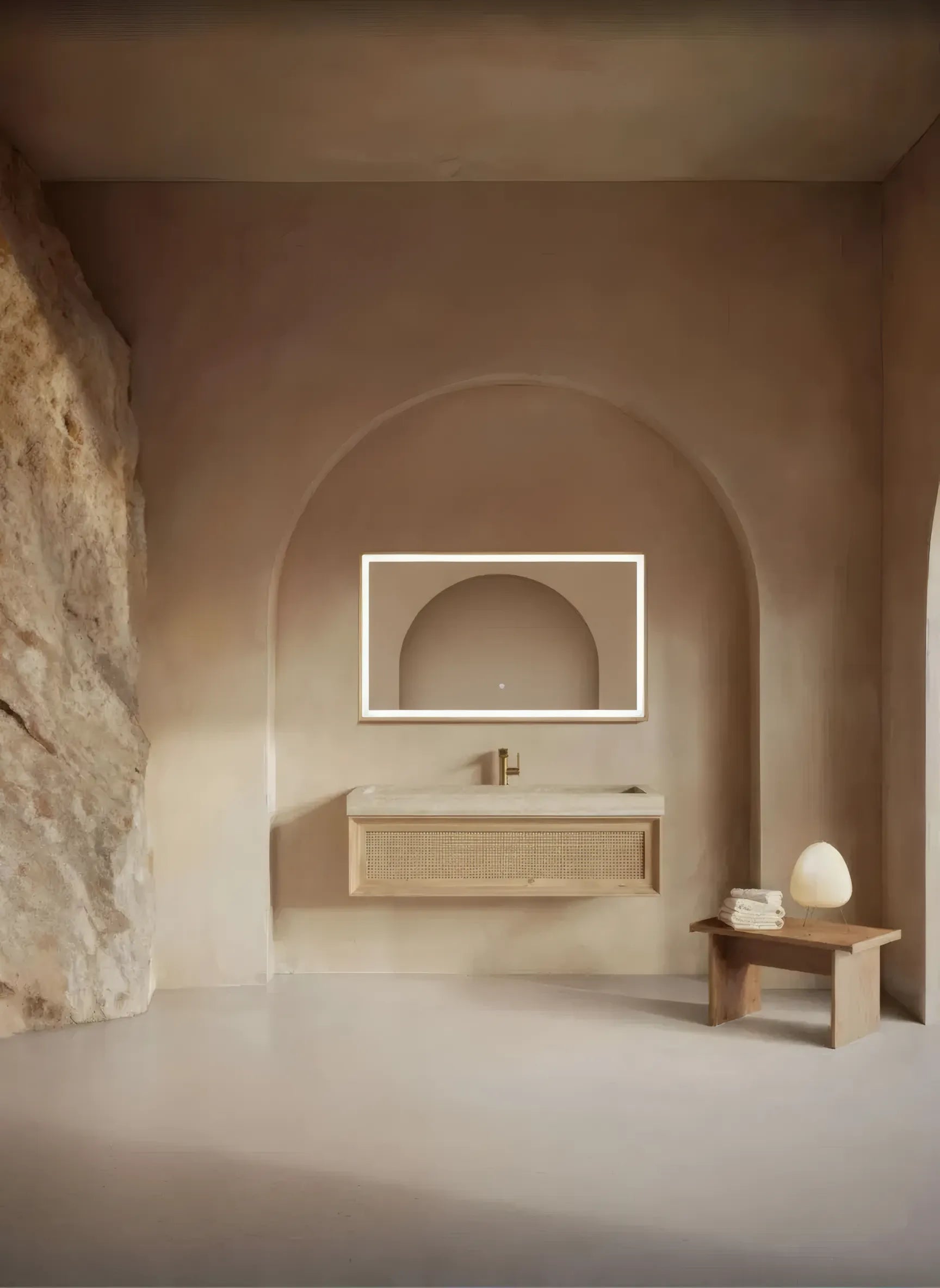 Set Mobilier Baie din Lemn Natur cu Oglindă LED – Design Modern & Premium